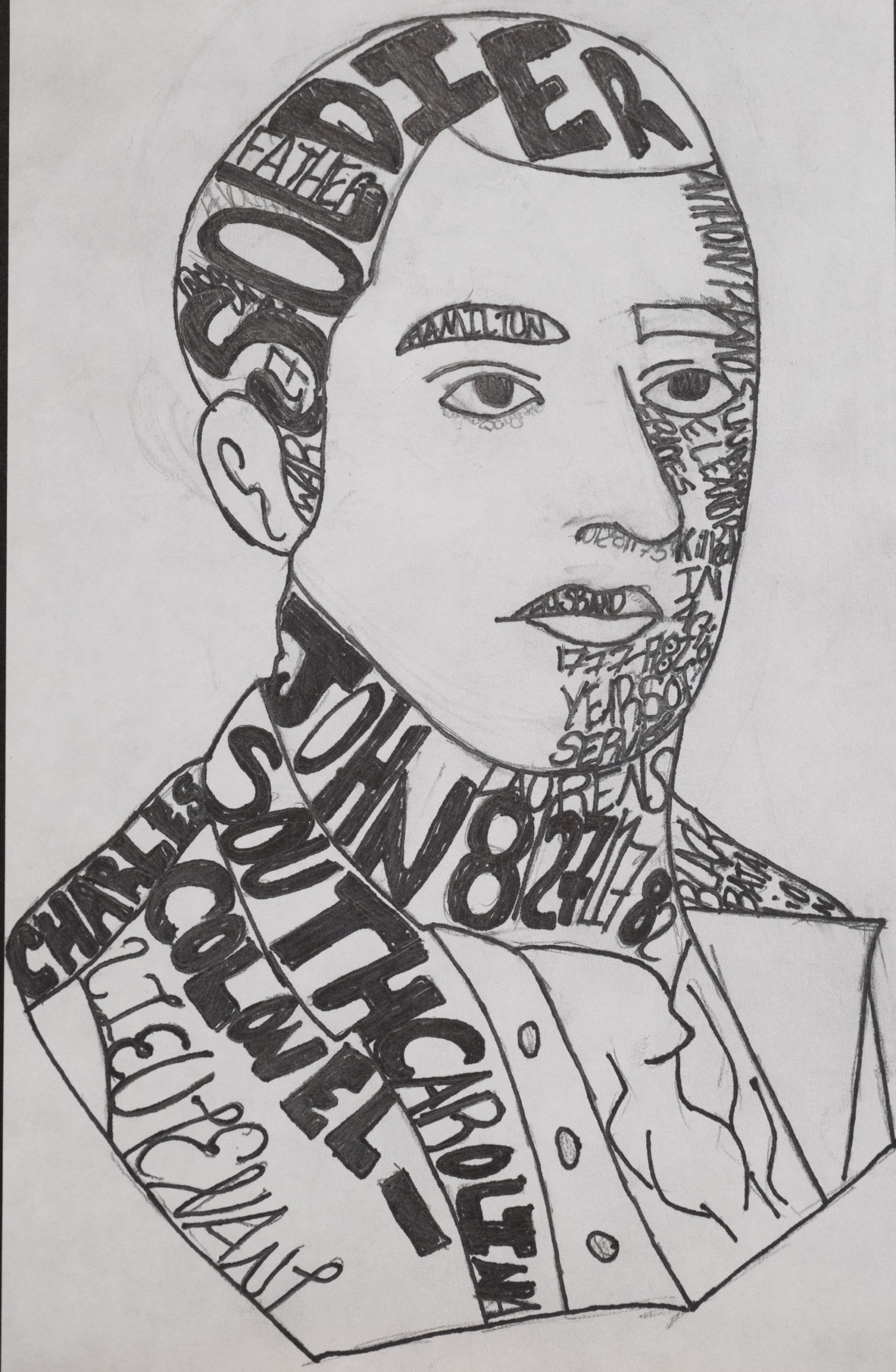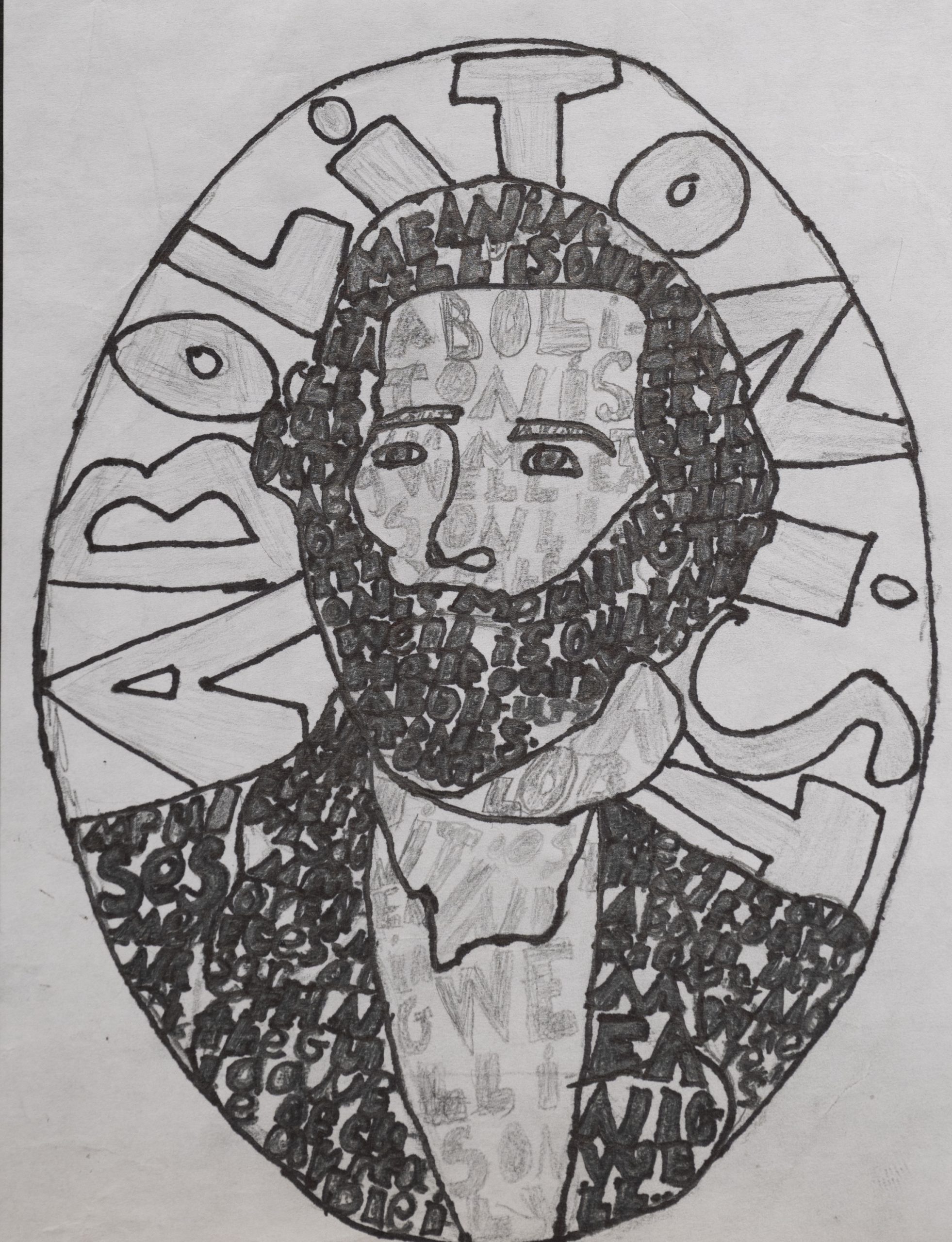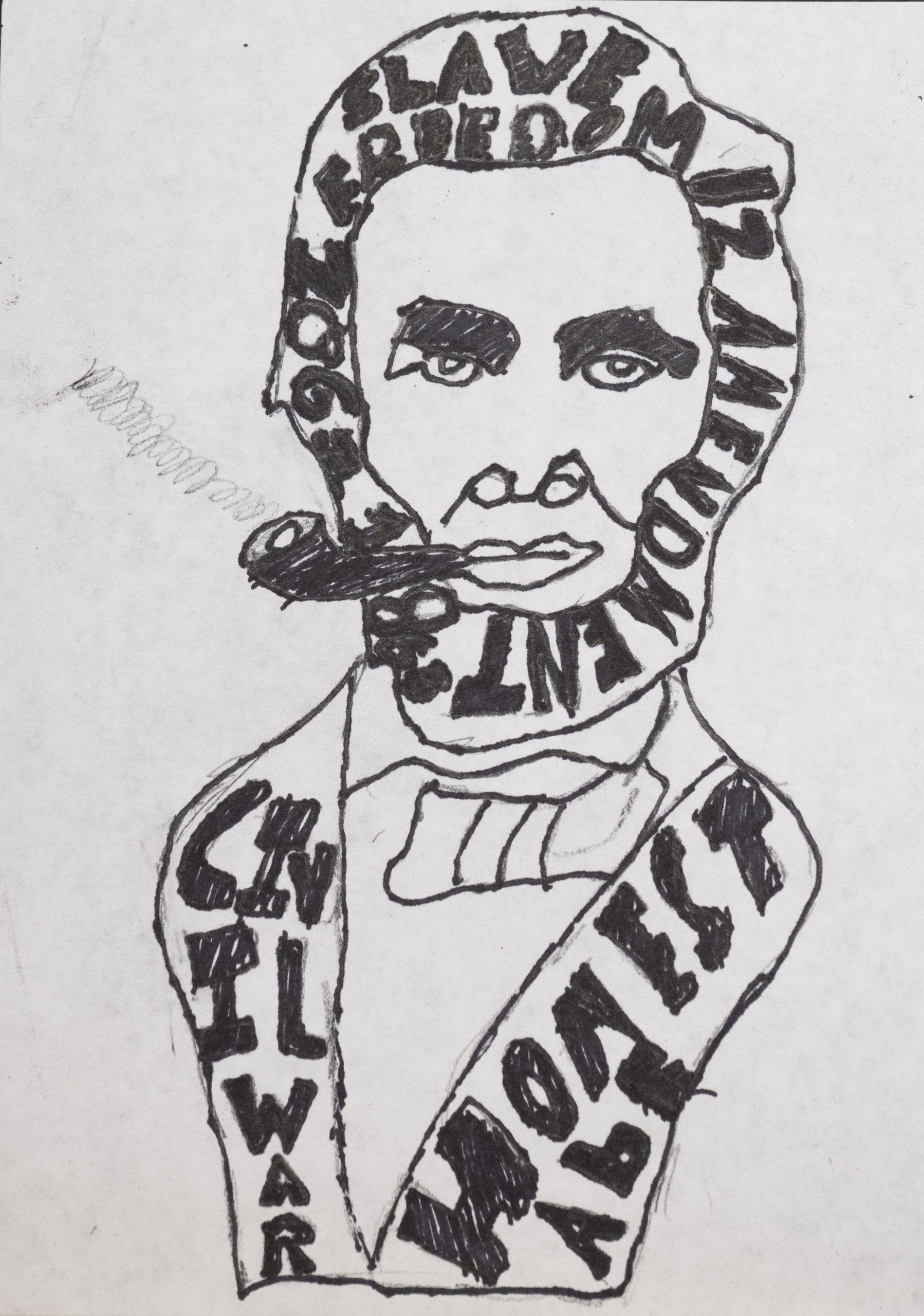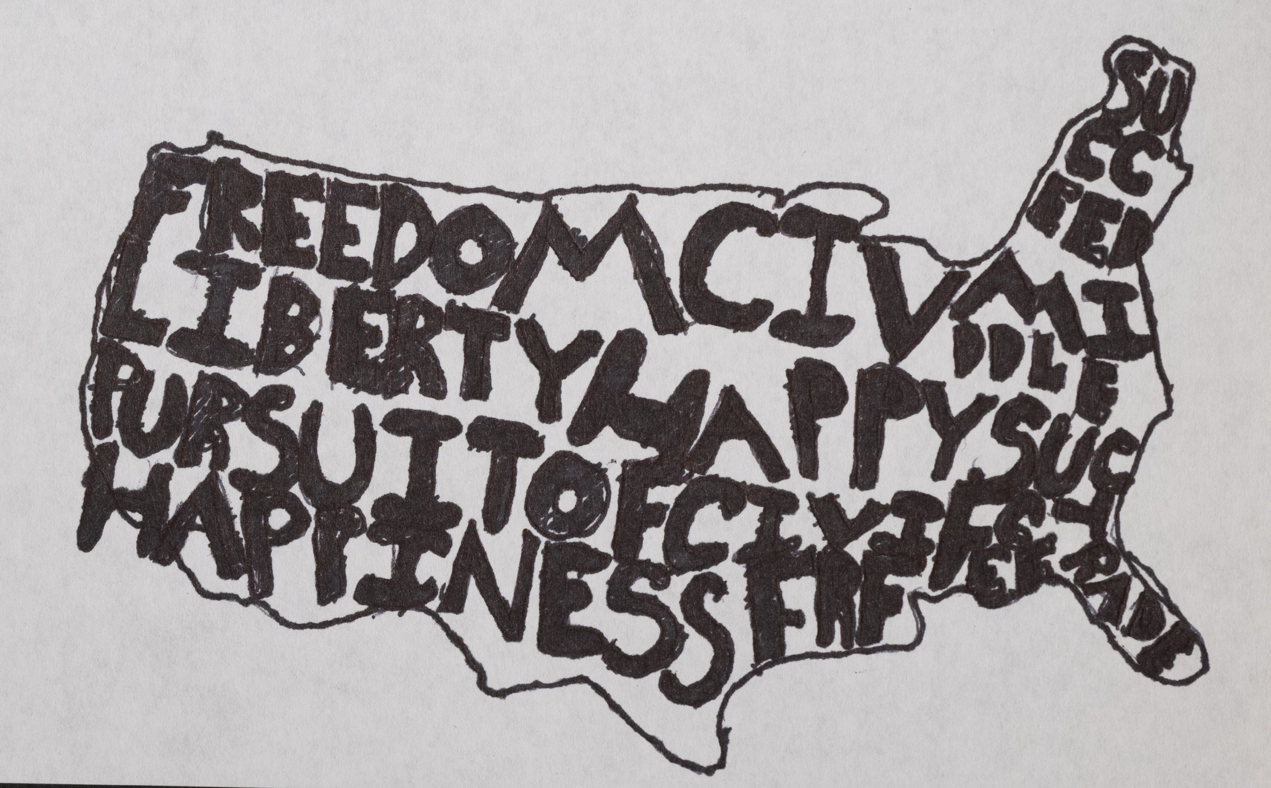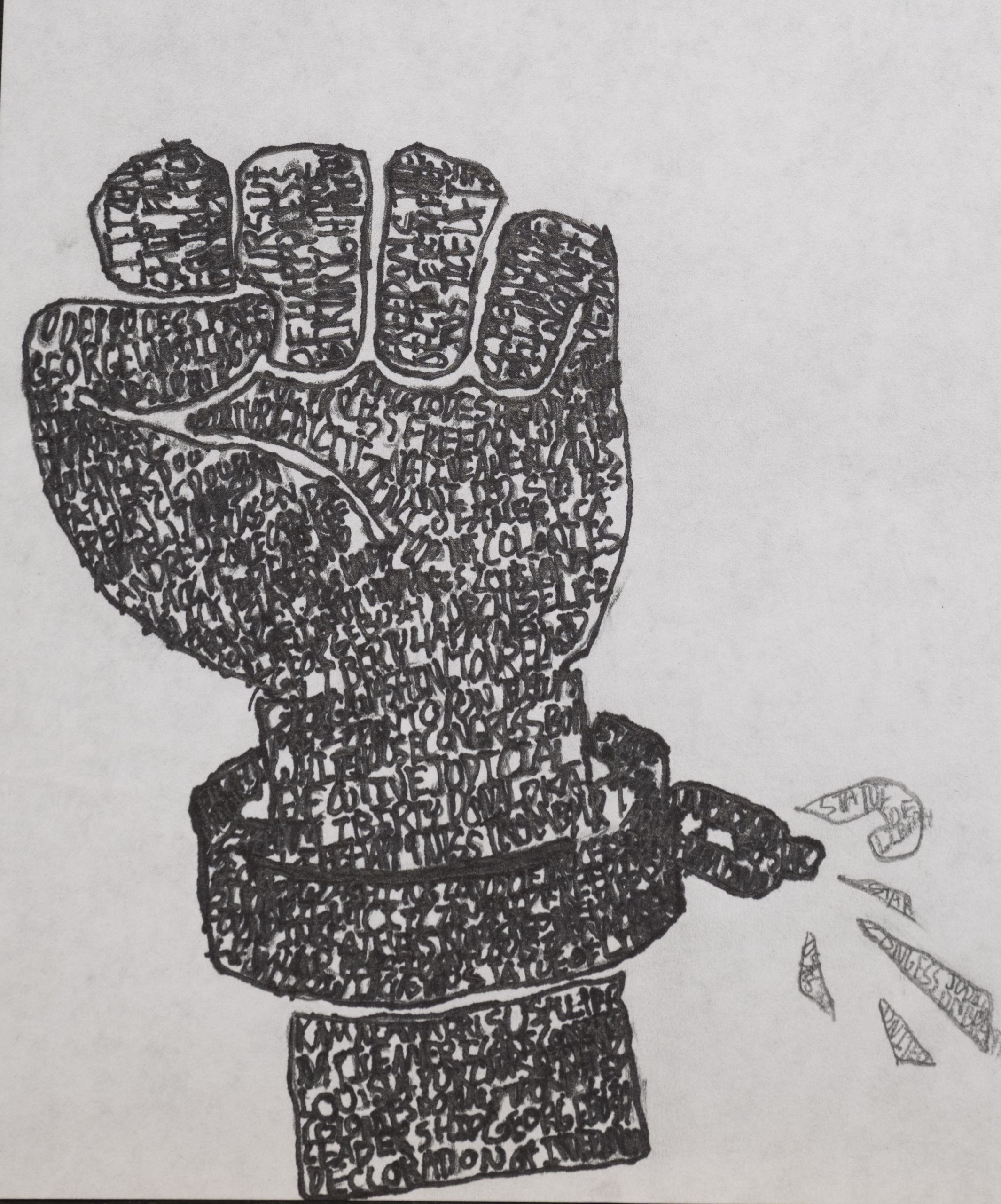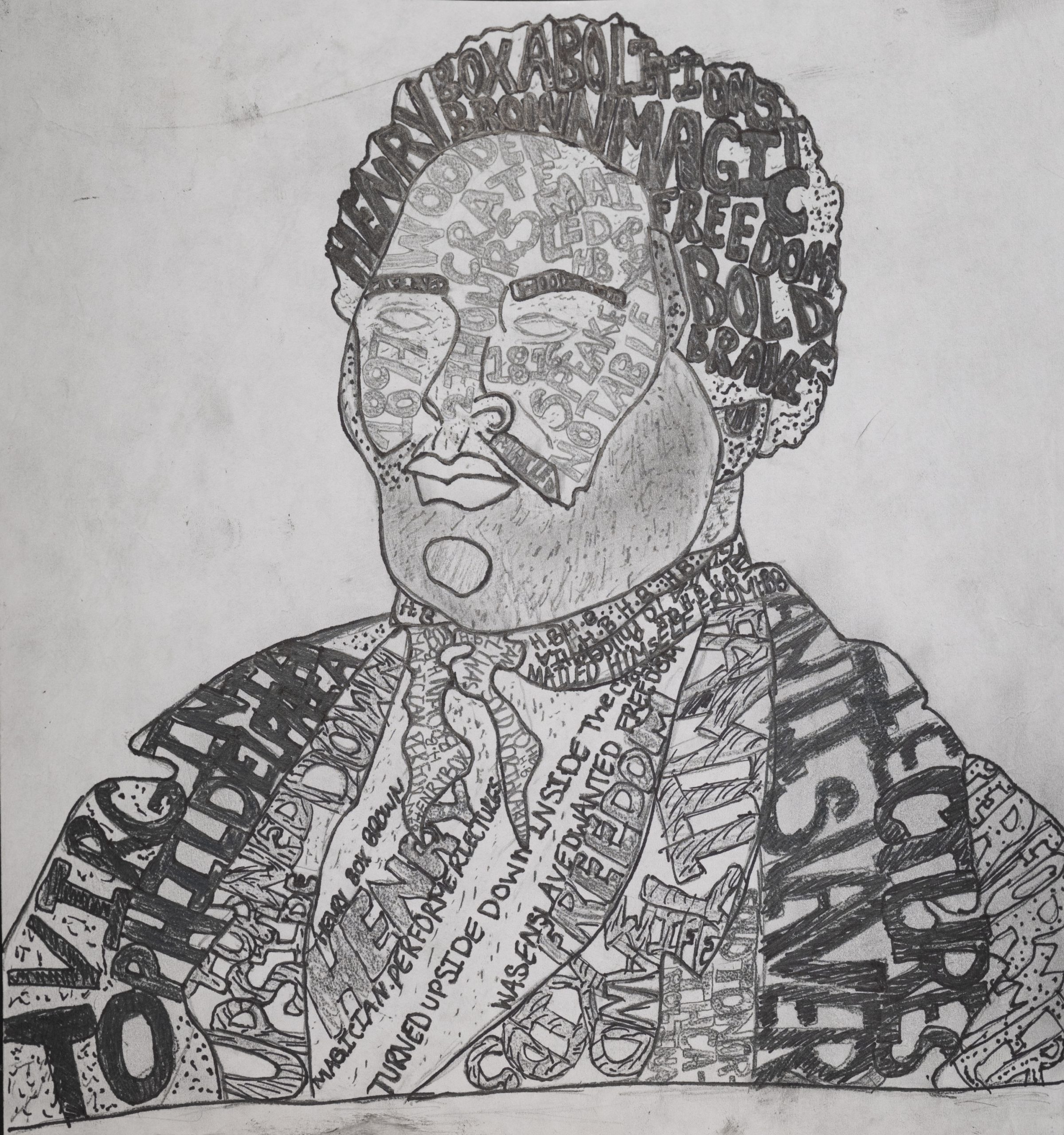 Students were asked to illustrate a famous section of the Declaration of Independence by focusing on one of the three main attributes discussed within, Life, Liberty, or the Pursuit of Happiness. Using the art technique of typography, students chose either a symbol or a civil rights leader, developed a vocabulary about that person or symbol, and created a two-dimensional work.