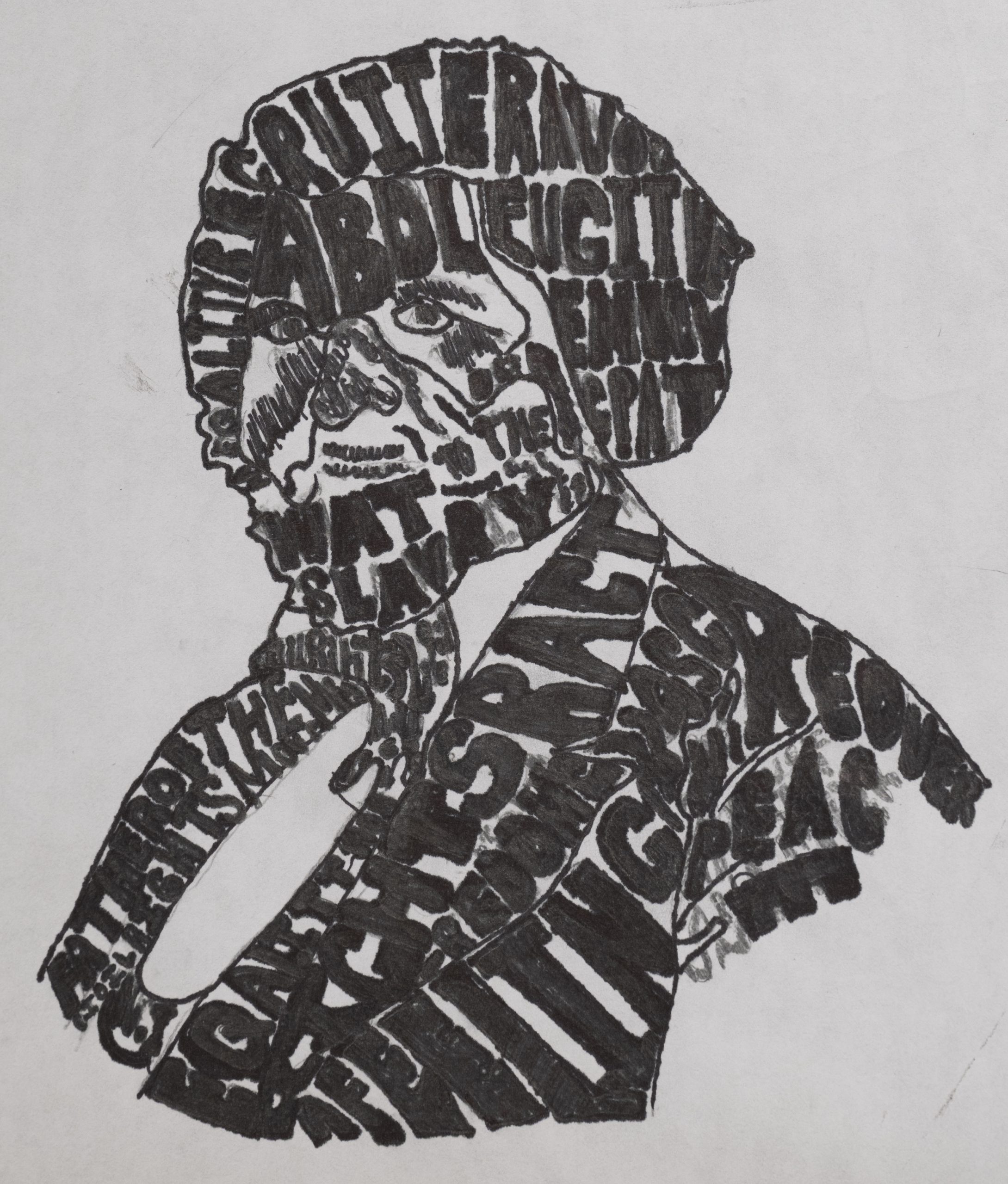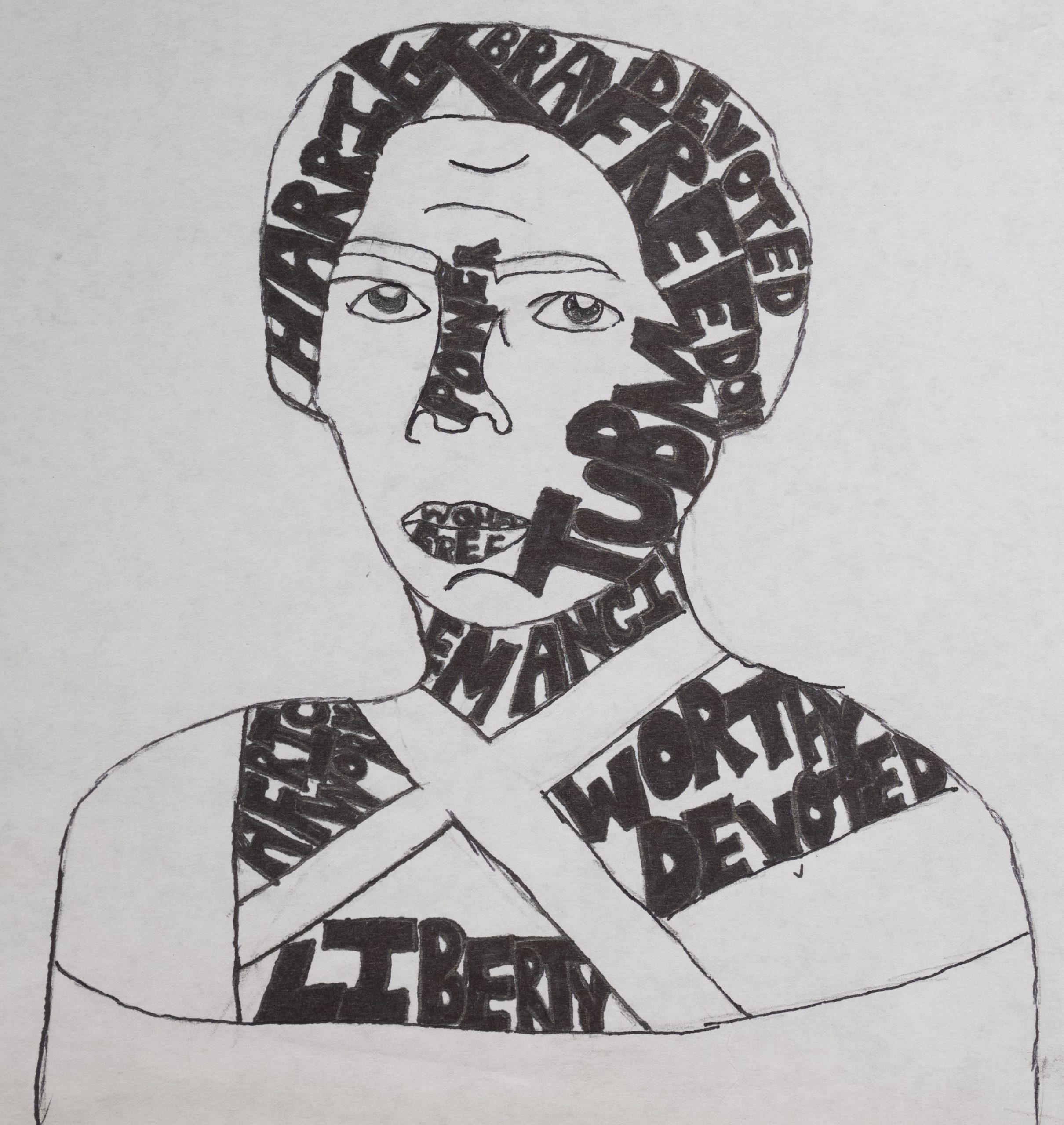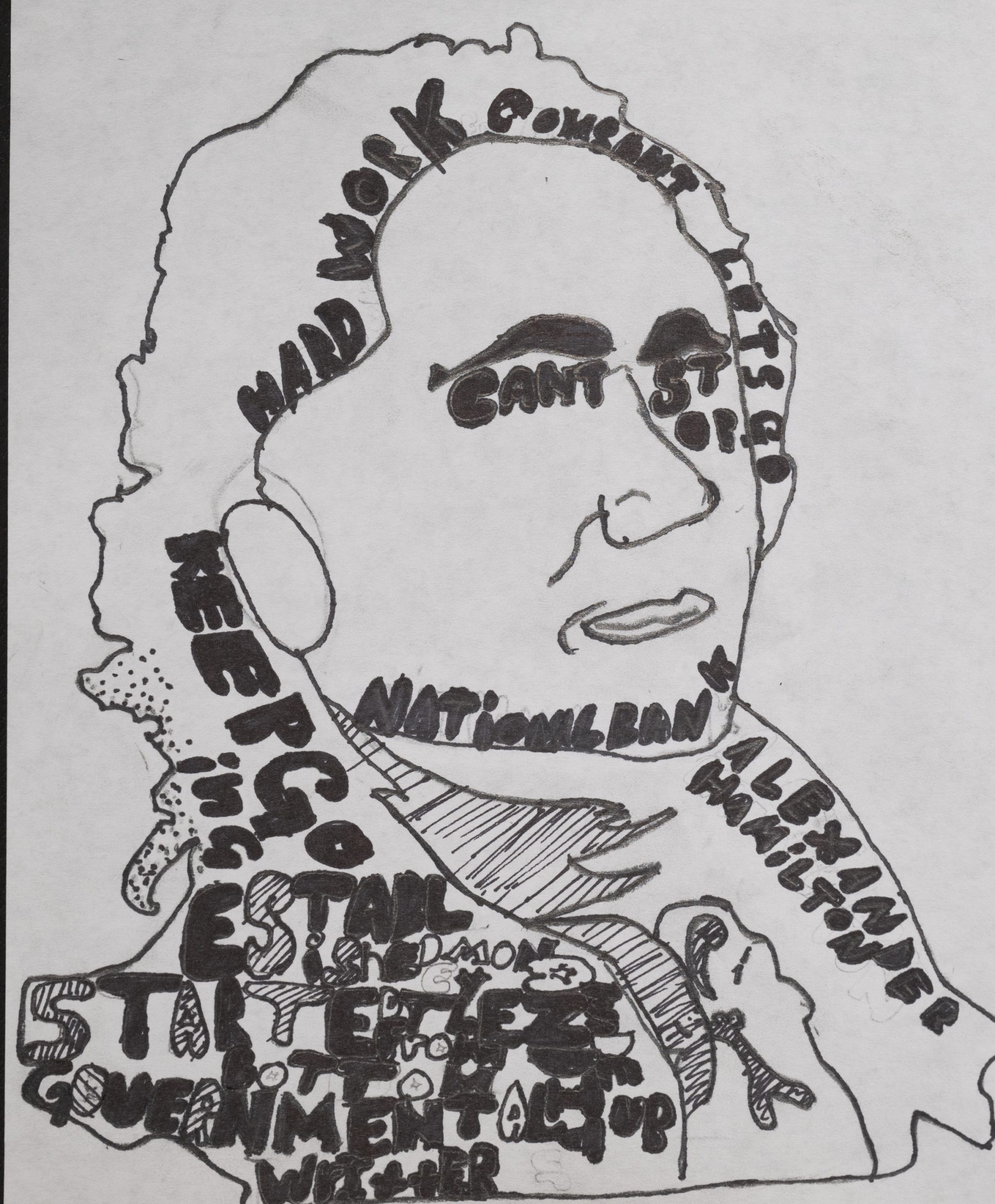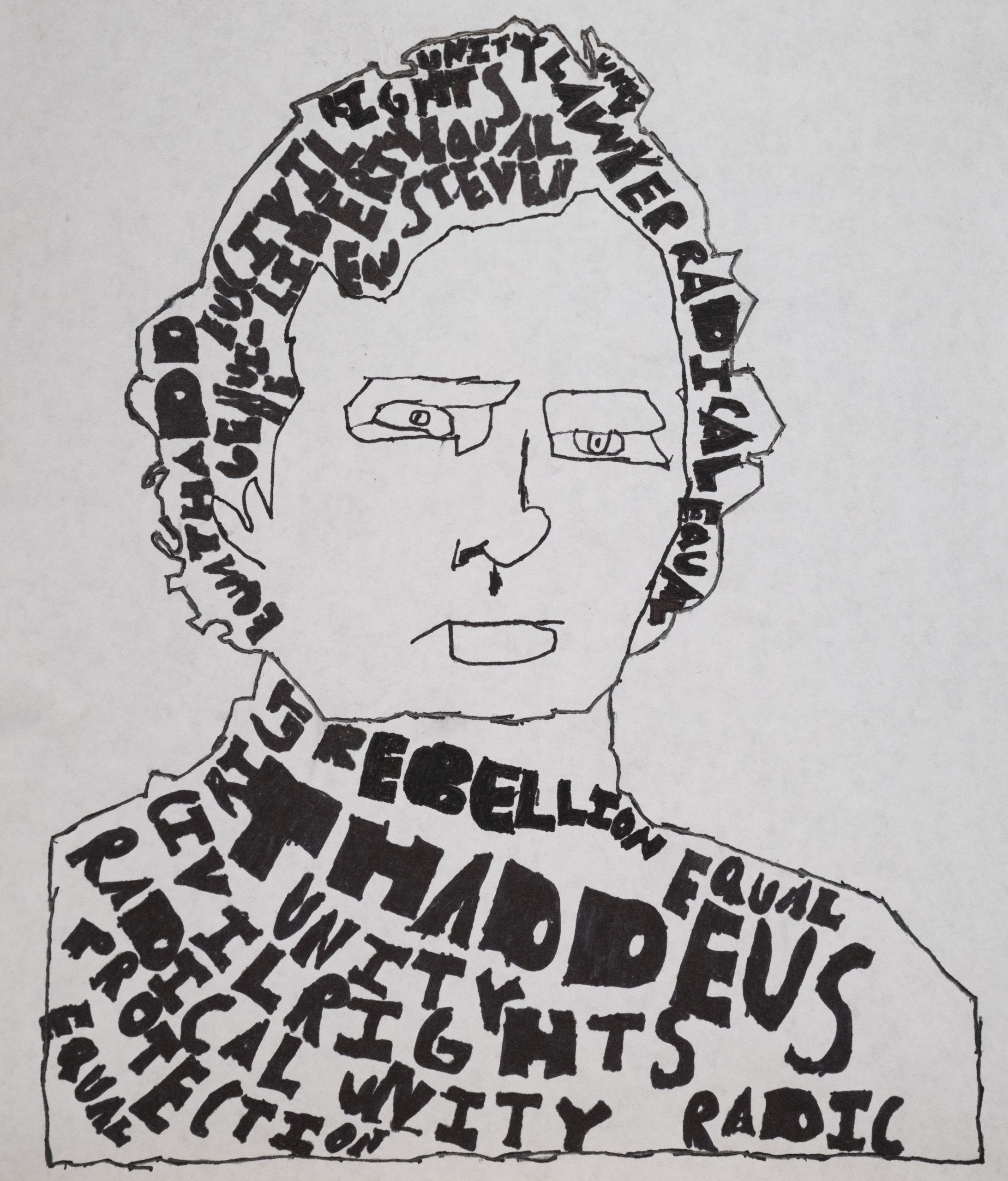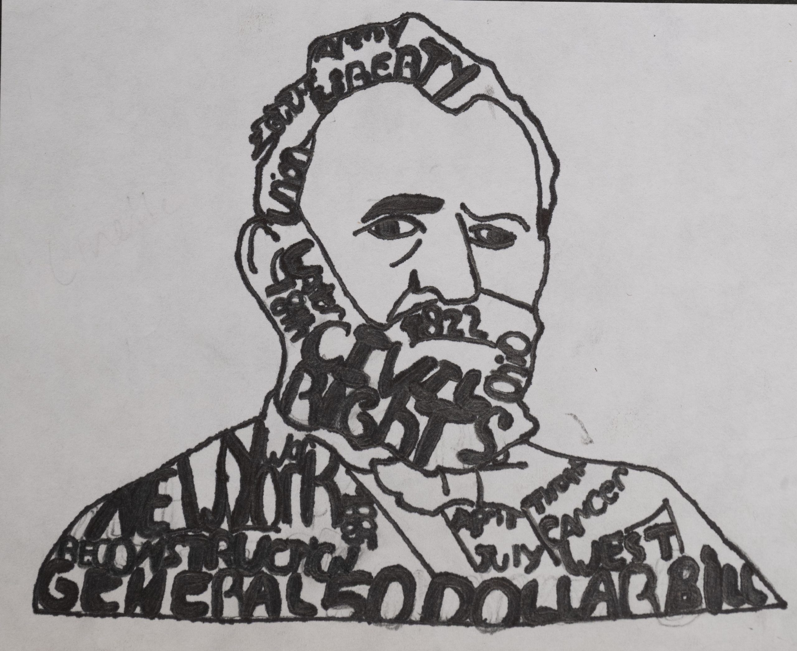 Students were asked to illustrate a famous section of the Declaration of Independence by focusing on one of the three main attributes discussed within, Life, Liberty, or the Pursuit of Happiness. Using the art technique of typography, students chose either a symbol or a civil rights leader, developed a vocabulary about that person or symbol, and created a two-dimensional work.