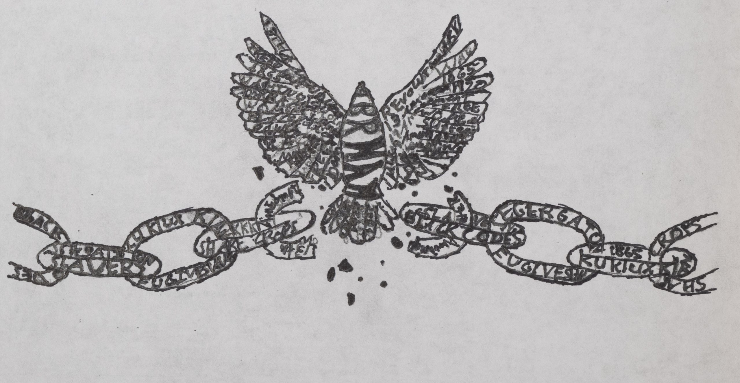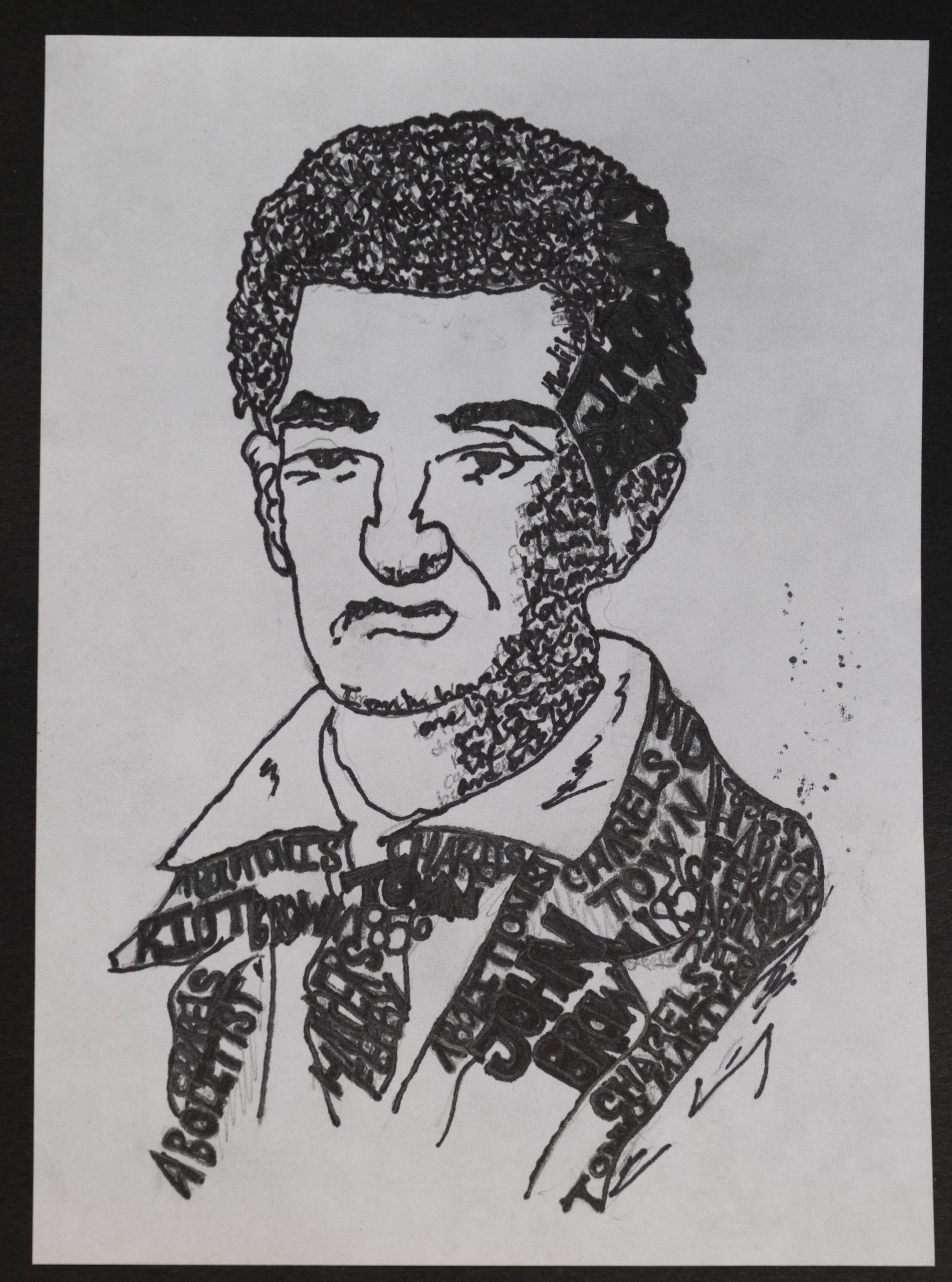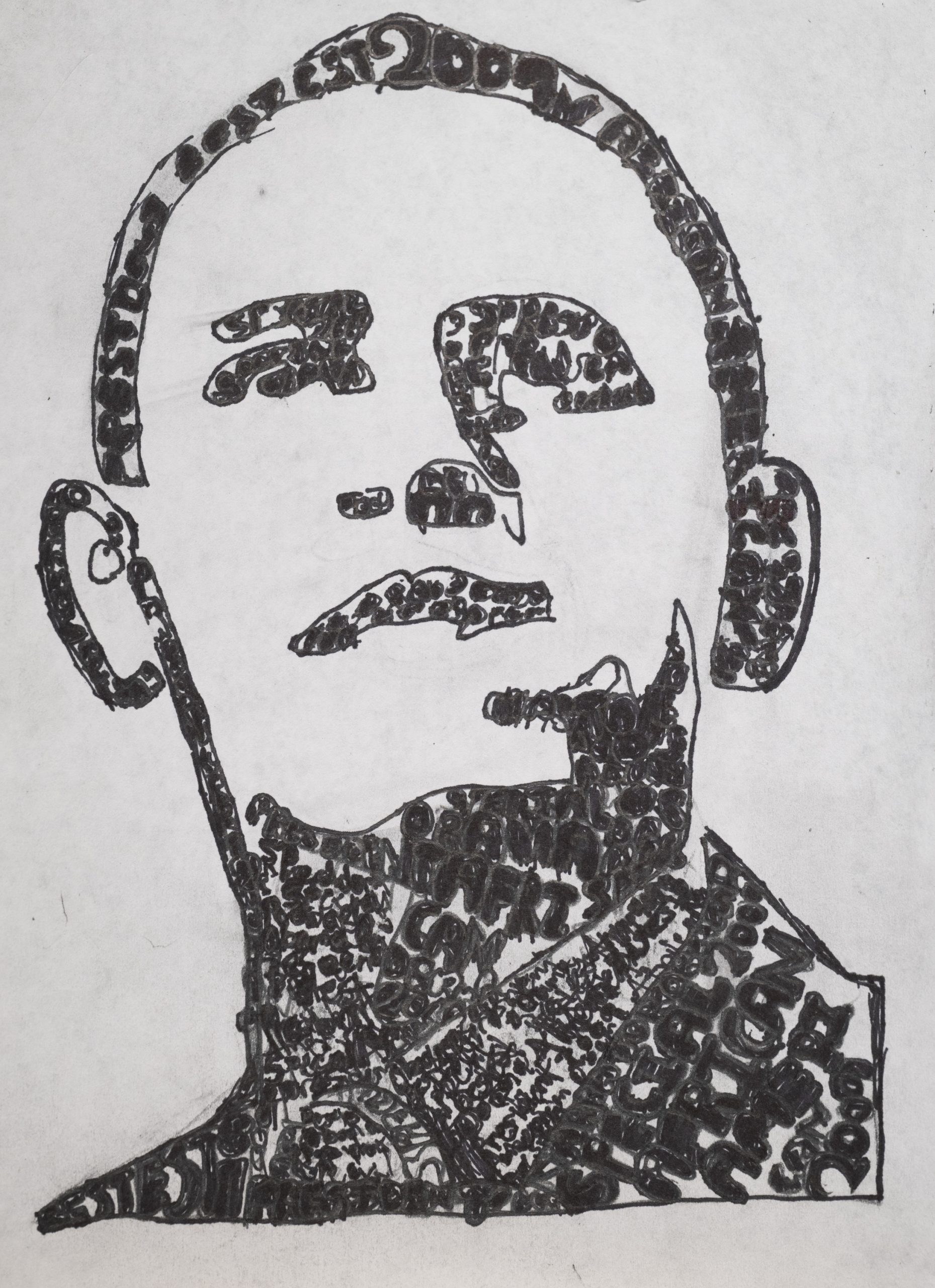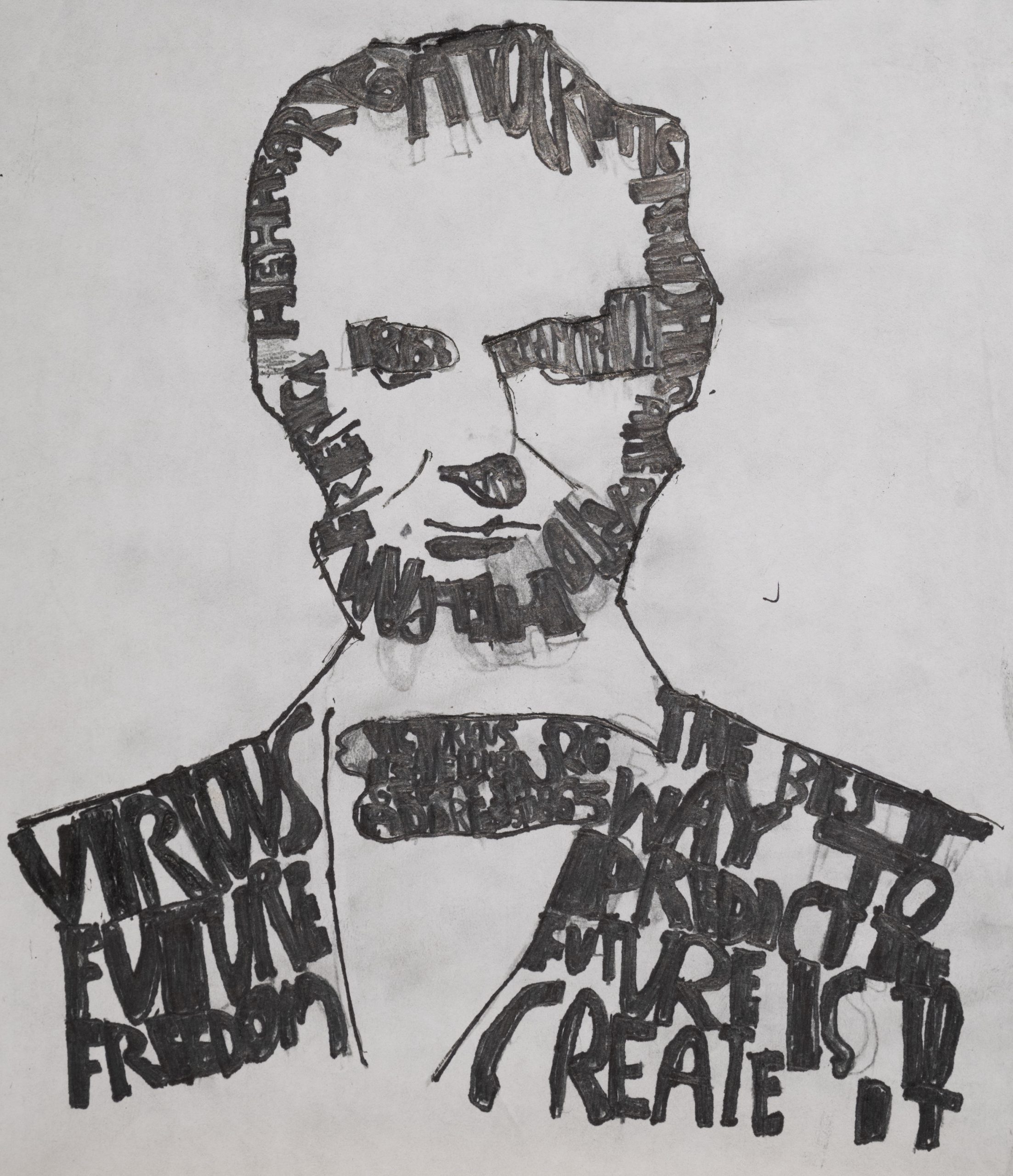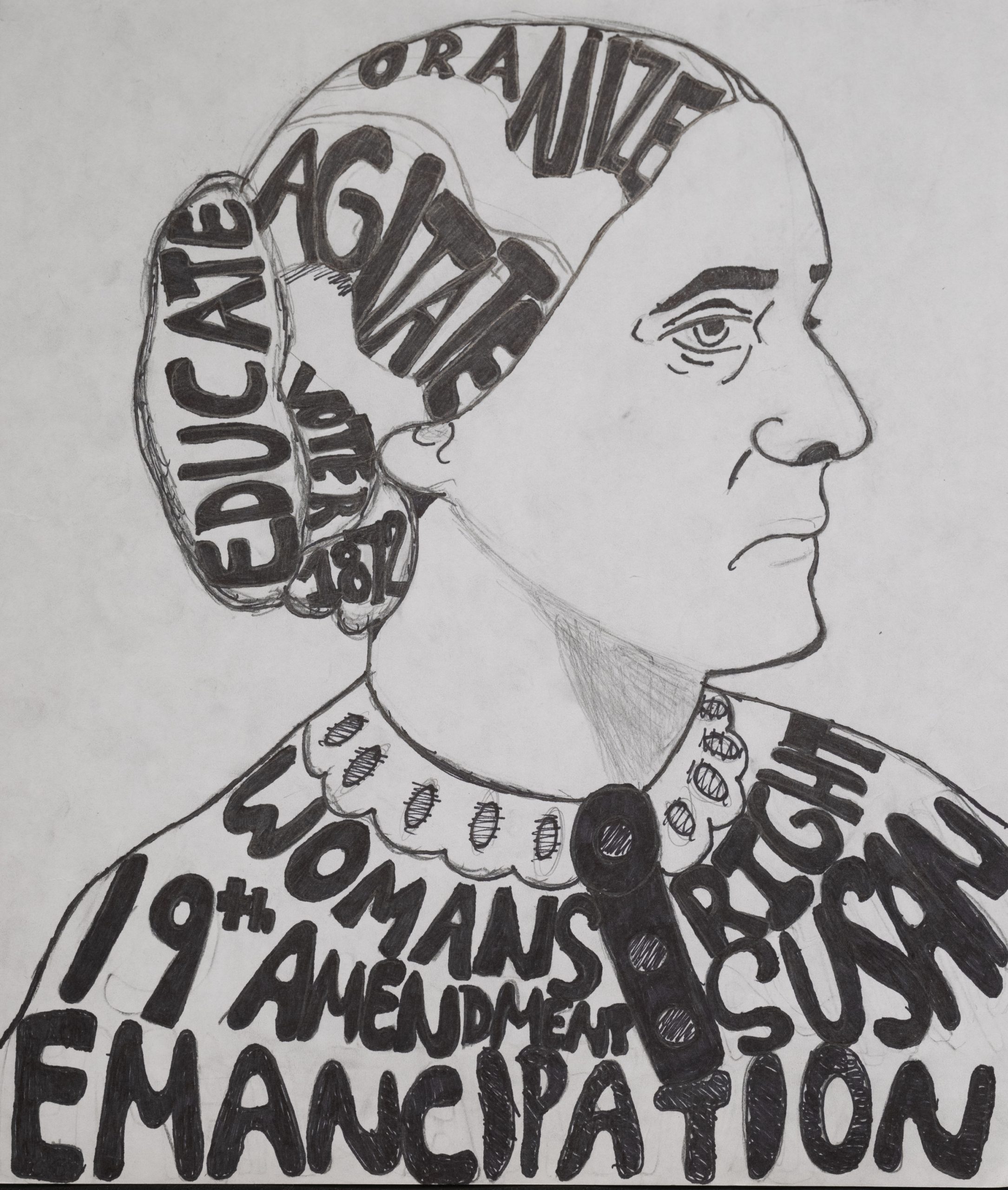 Students were asked to illustrate a famous section of the Declaration of Independence by focusing on one of the three main attributes discussed within, Life, Liberty, or the Pursuit of Happiness. Using the art technique of typography, students chose either a symbol or a civil rights leader, developed a vocabulary about that person or symbol, and created a two-dimensional work.