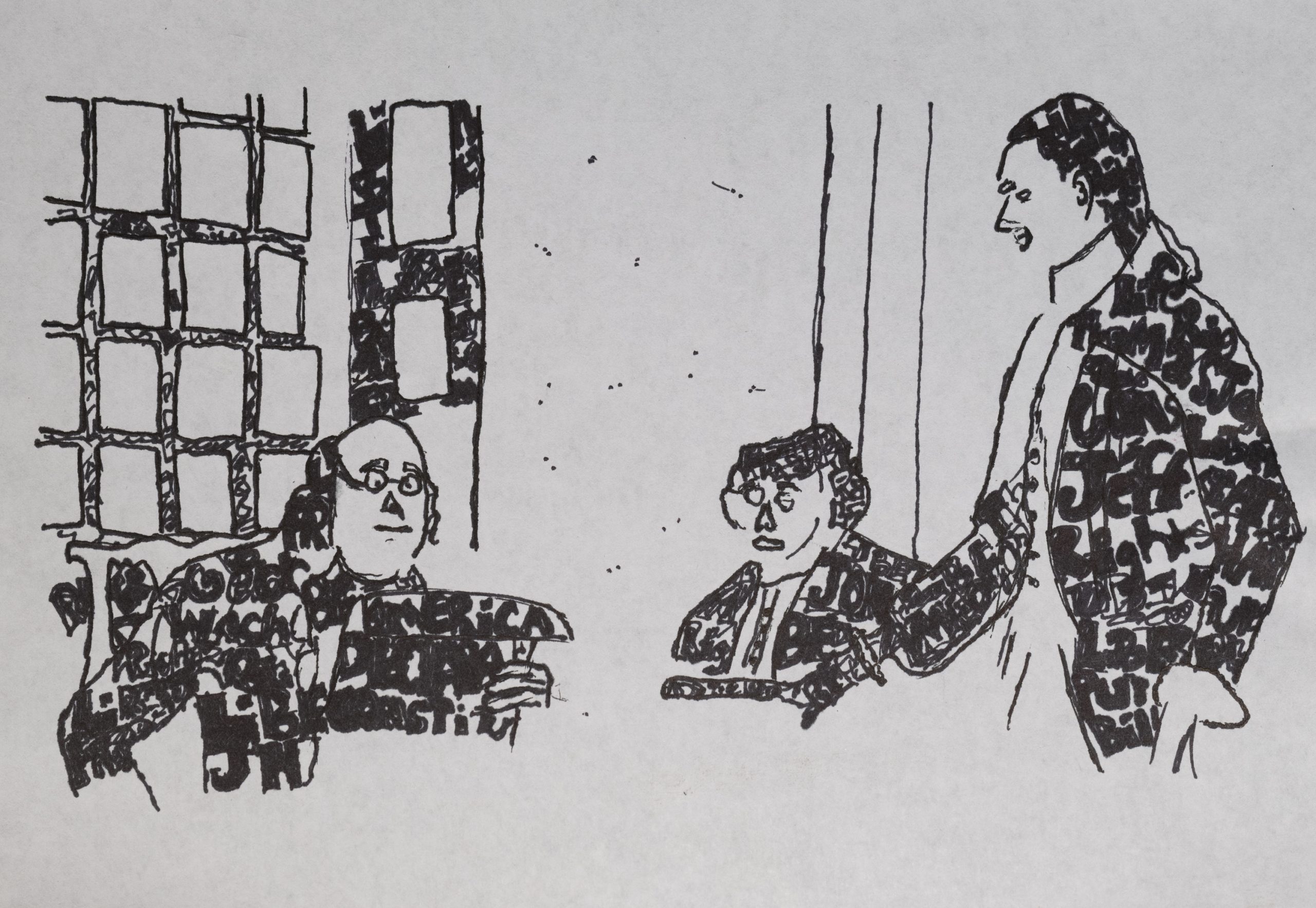 Our cartoonists worked collaboratively in a small group to research and brainstormed different famous figures in judicial history that they felt should be commemorated upon a stamp. After their research they worked to tell the story of each person’s life and career in a single cartoon illustration. They worked in an array of different processes and materials to create their inked pieces while utilizing different digital softwares to render in color. They utilized spatial depth by separating each plane, individually mounting and cutting out each piece on foamcore with an exacto knife. They used spacers to create depth and interest for