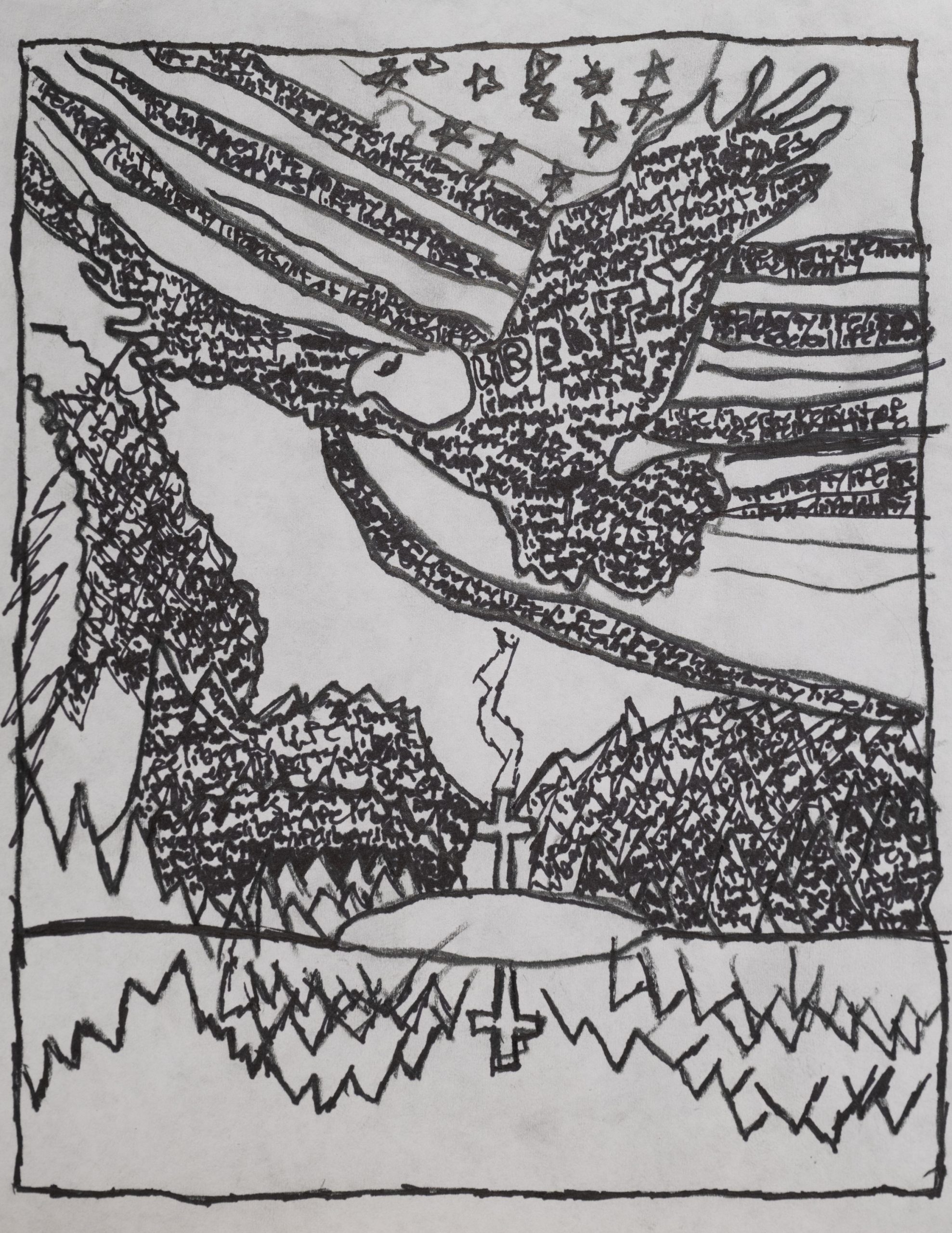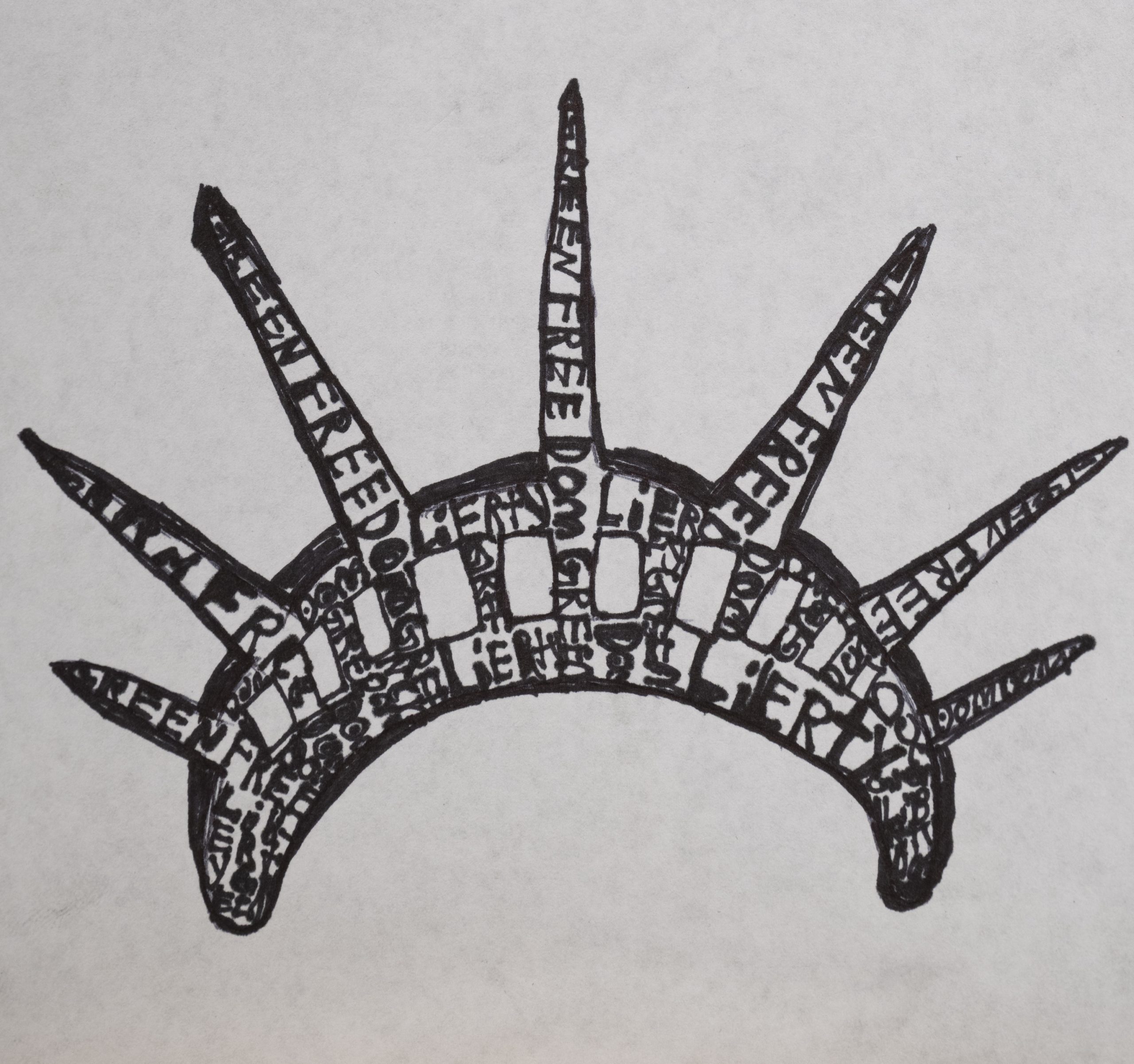 My drawing was inspired by a visit to the courthouse during a naturalization ceremony. The act of witnessing people leave their homelands in search of opportunity and pledge their allegiance as we welcomed them was a moving experience. lt was heartwarming to see the judge promise our new citizens safety, equality and a new bright future ahead of them. I enjoyed learning and using Prismacolor colored pencils to create this drawing. I carefully chose specific colors to blend together to create this vivid, optimistic image.