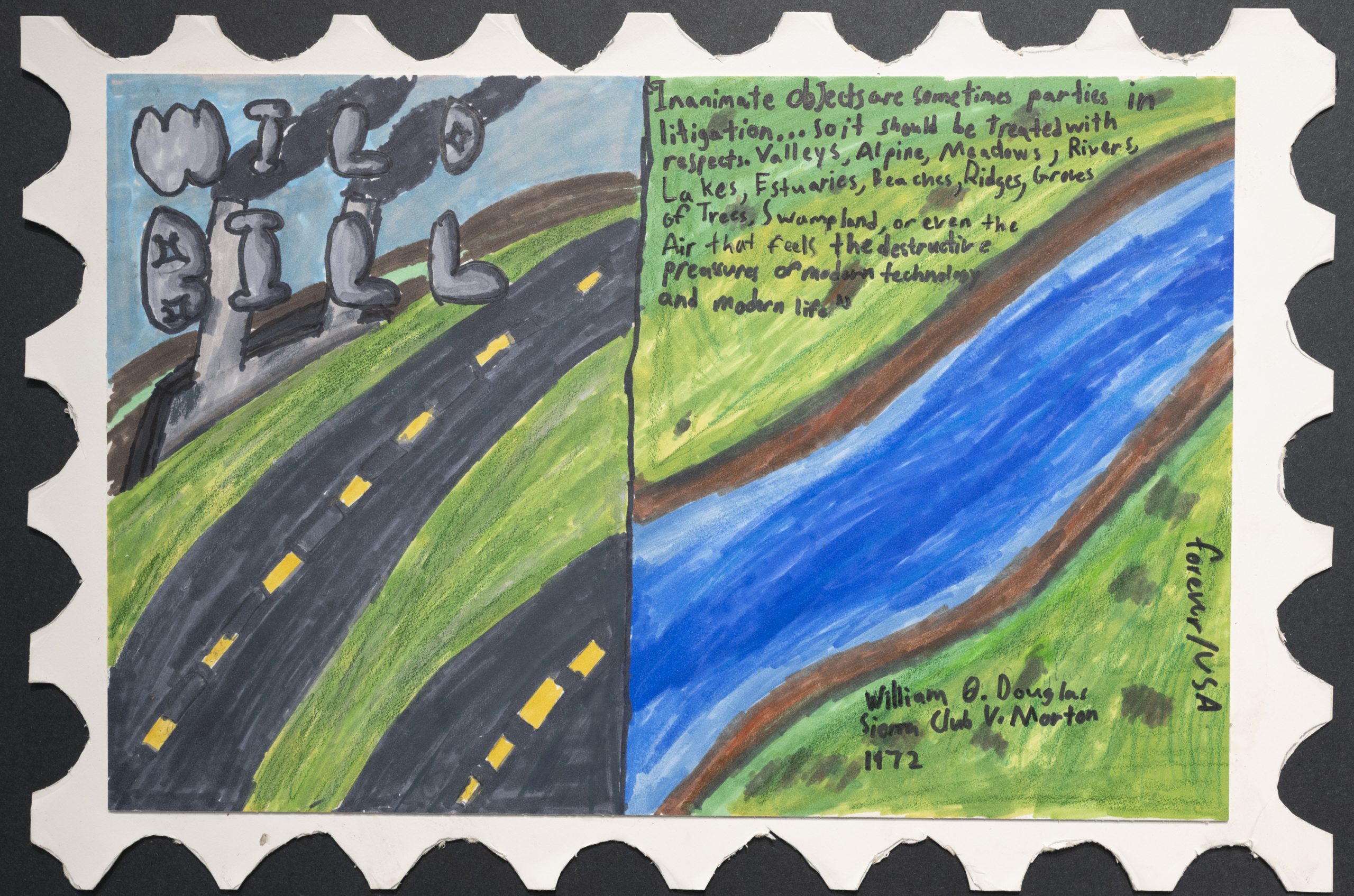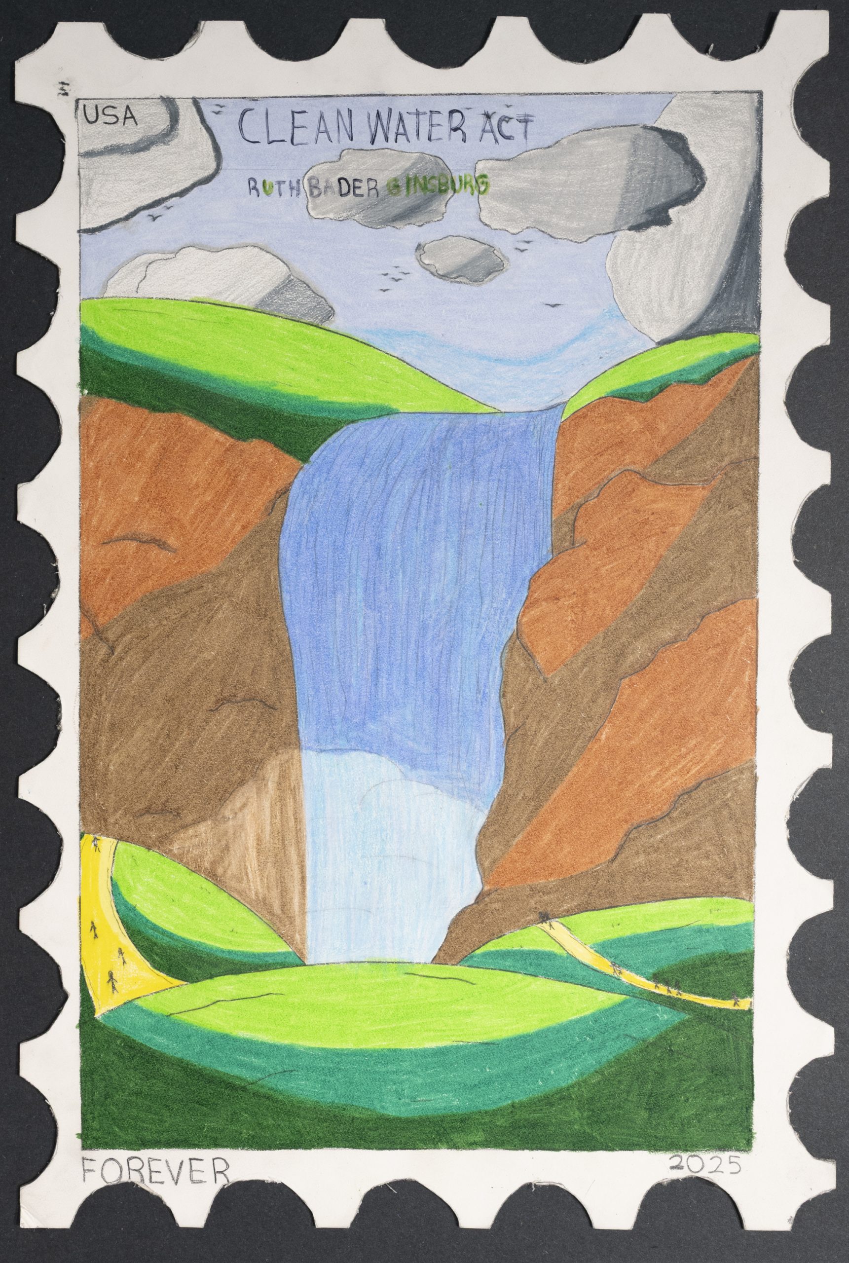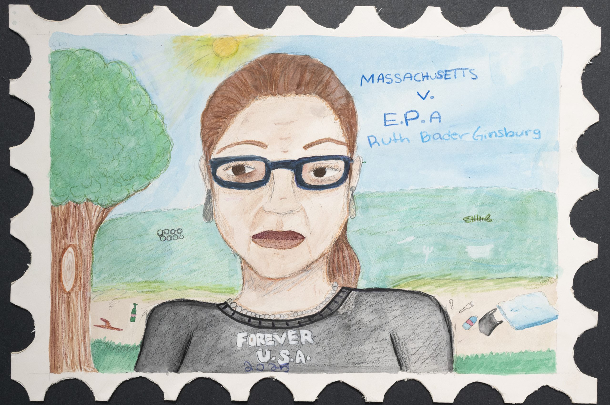 Students chose a justice, prominent attorney, court ruling or legislation that has significantly impacted the environment in the United States. These include Justice William O. Douglas, Justice William Newsom, Justice Ruth Bader Ginsburg, and Attorney Amy Bowers Cordalis. Legislation included the NEPA, Clean Air Act, Clean Water Act, and Endangered Species Act. Students studied the topic that they chose, US stamp designs and basic graphic design, and they each created a stamp that celebrates the significance of the justice, attorney, case or act that it illustrates.