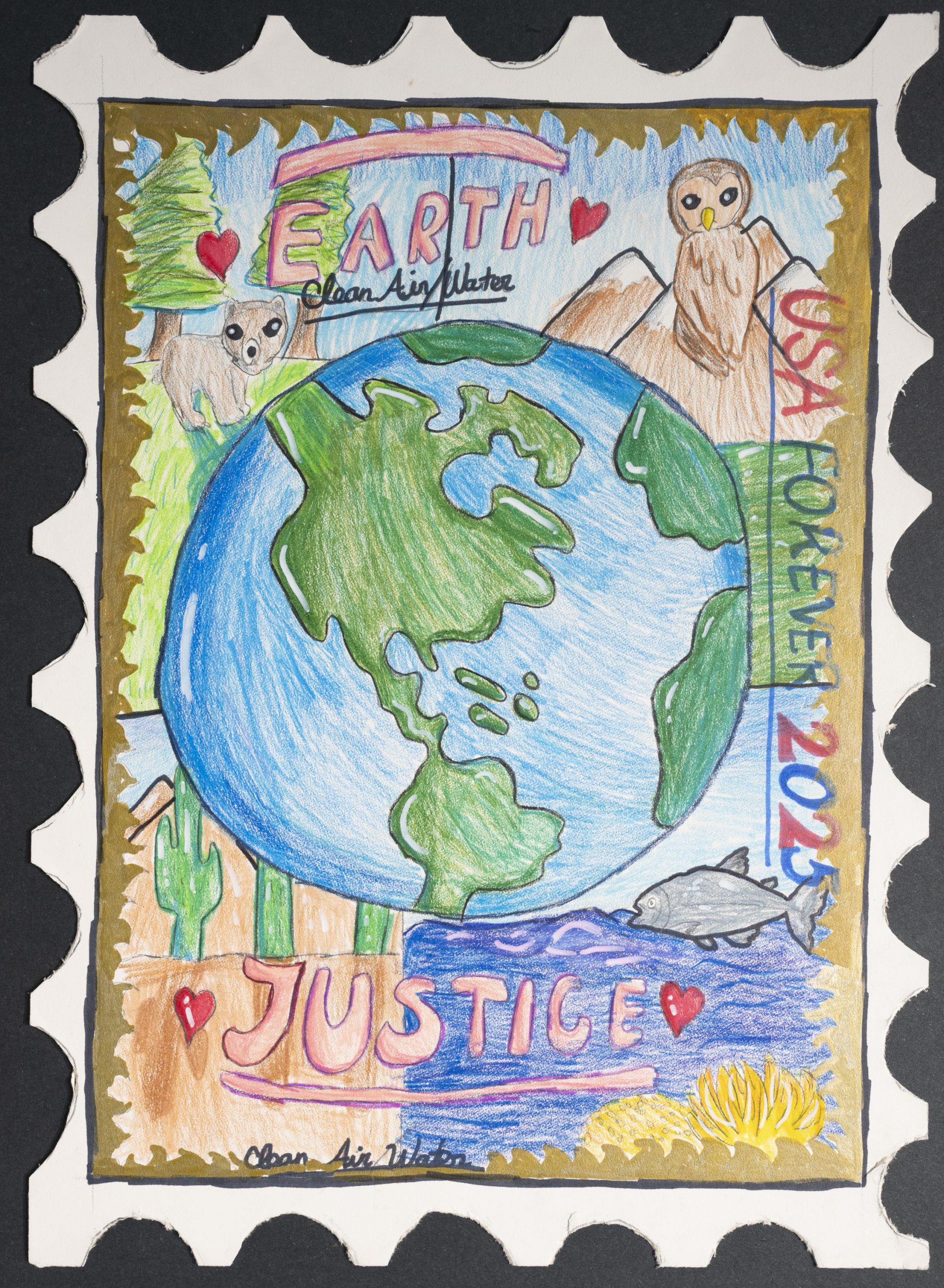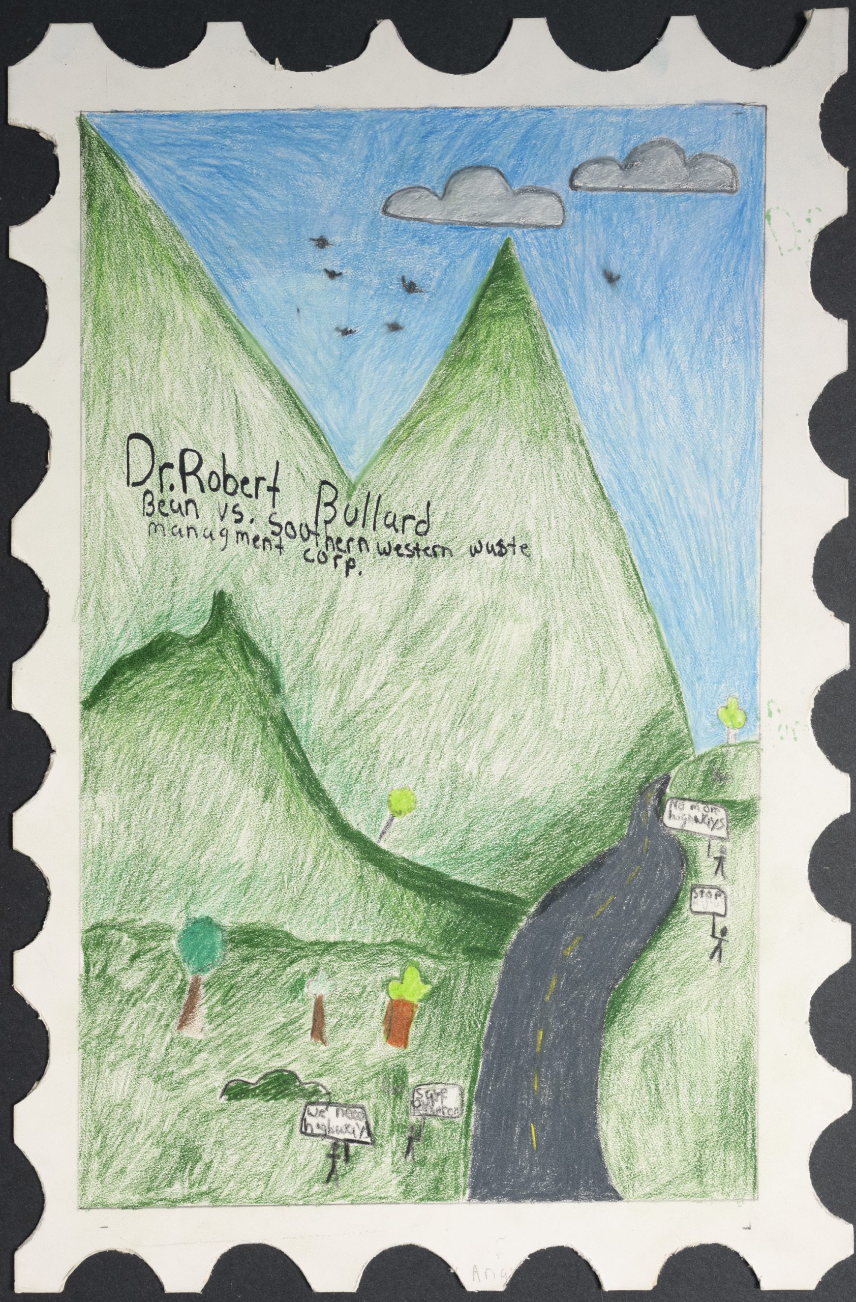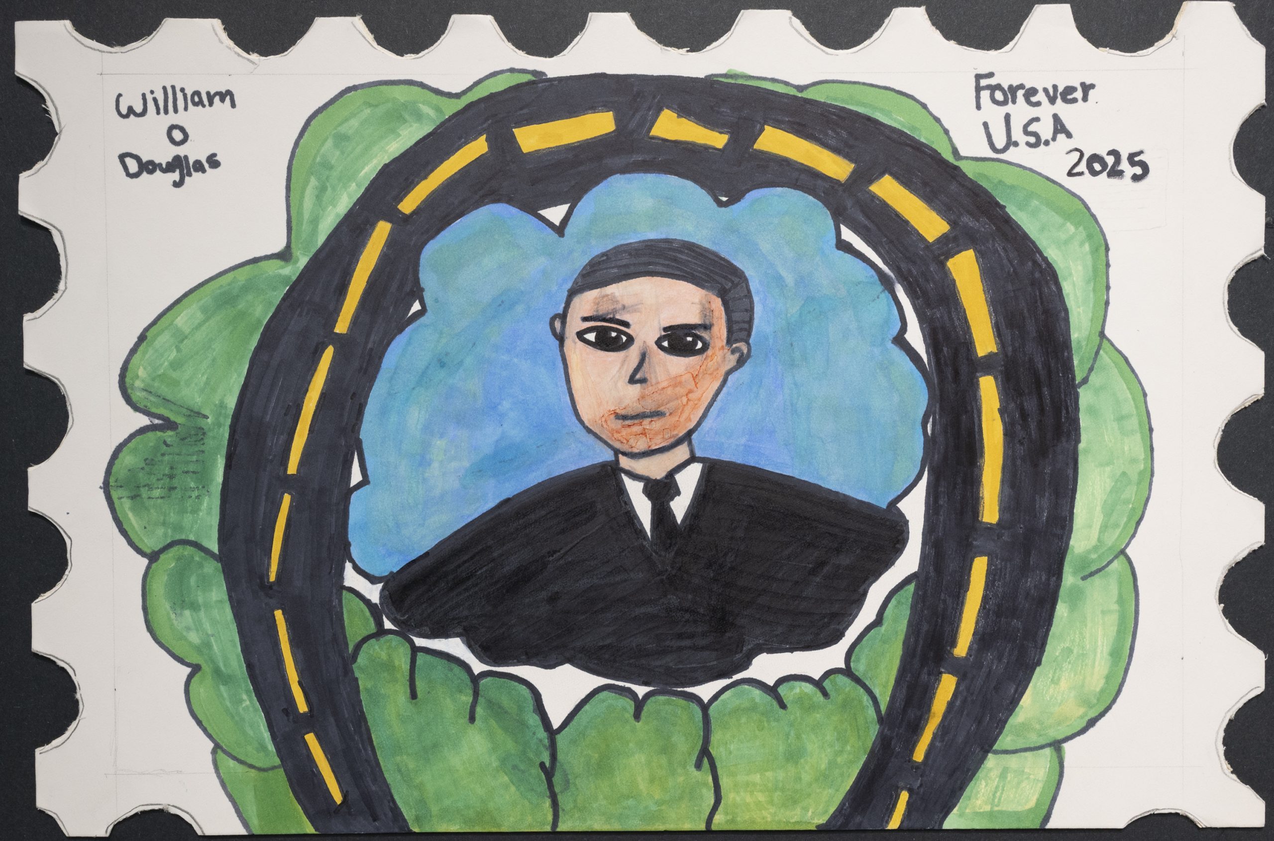 Students chose a justice, prominent attorney, court ruling or legislation that has significantly impacted the environment in the United States. These include Justice William O. Douglas, Justice William Newsom, Justice Ruth Bader Ginsburg, and Attorney Amy Bowers Cordalis. Legislation included the NEPA, Clean Air Act, Clean Water Act, and Endangered Species Act. Students studied the topic that they chose, US stamp designs and basic graphic design, and they each created a stamp that celebrates the significance of the justice, attorney, case or act that it illustrates.